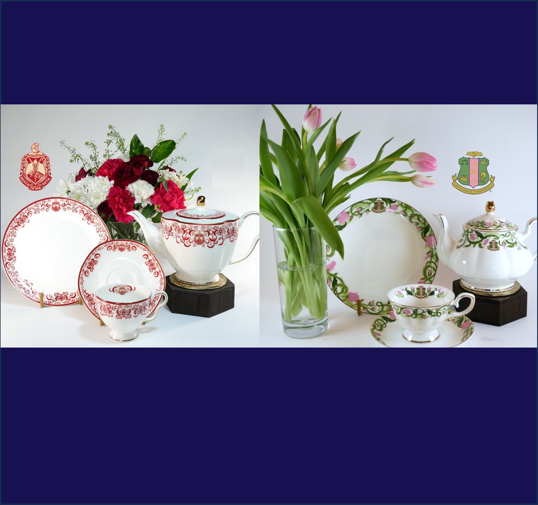 Honoring heritage and symbolisms, Regalian designs unique china patterns that are special and exclusive to each sorority.
